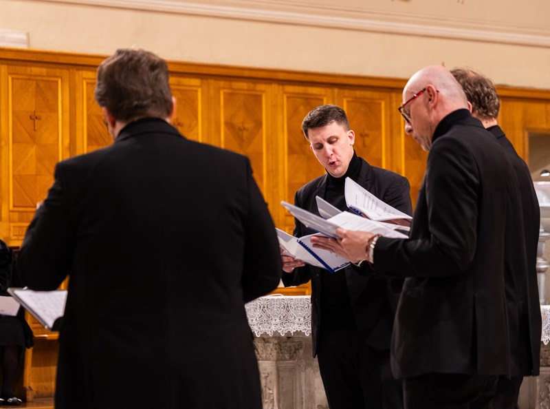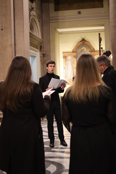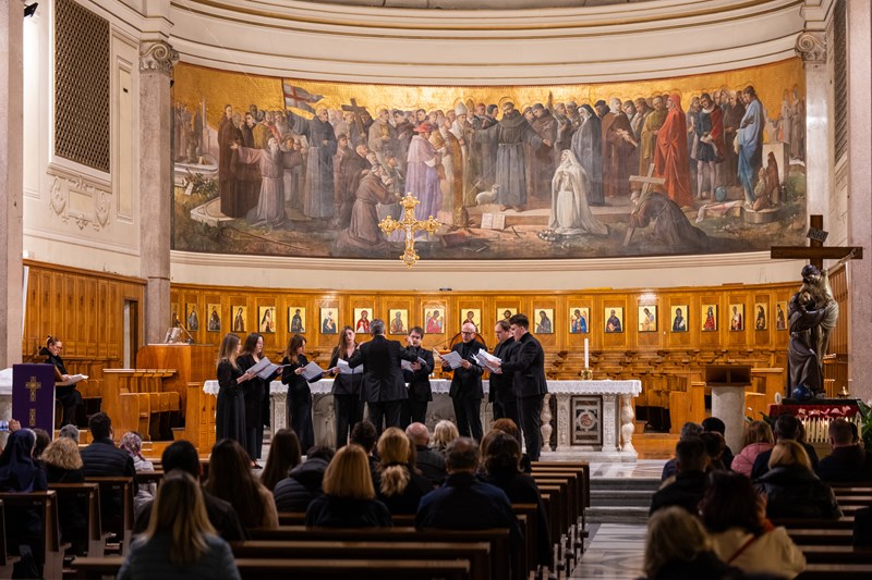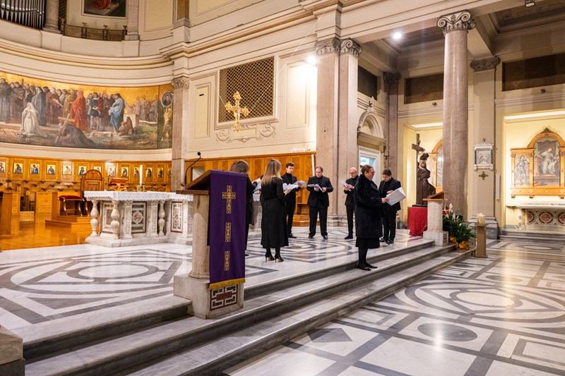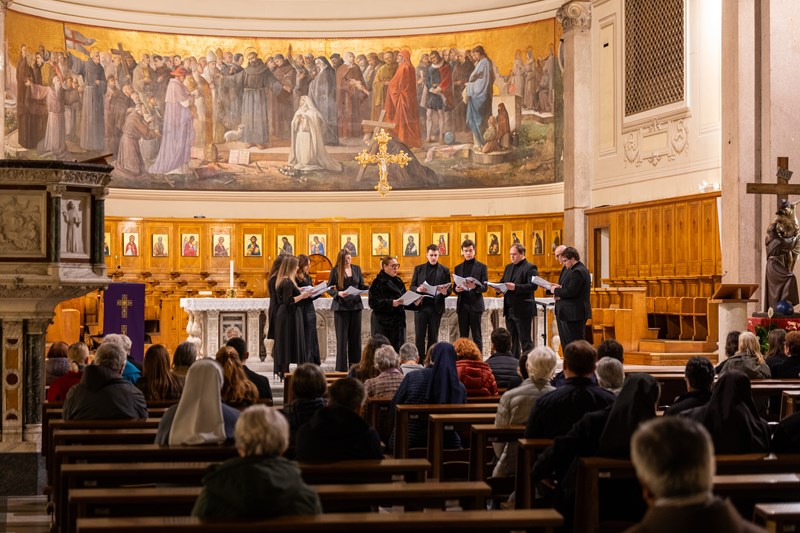 Koncert je donio birani program većinski orijentiran prema promišljanju korizmenog vremena u kojemu se nalazimo. U želji da rimskoj publici (u kojoj je, n. b. bilo i dosta Hrvata) predstavi i hrvatsku glazbenu baštinu, pola koncerta činile su skladbe hrvatskih autora, od motetâ Tomasa Cecchinija iz ranoga 17. stoljeća pa sve do suvremenih autora poput Anđelka Igreca, a praizveden je i aranžman člana ansambla Fabijana Šameca. Drugu polovicu koncerta činile su probrane kompozicije kanonskih autora svjetske glazbene baštine poput Giovannija Pierluigija da Palestrine, Tomasa Luisa de Victorije, W. A. Mozarta i drugih.
